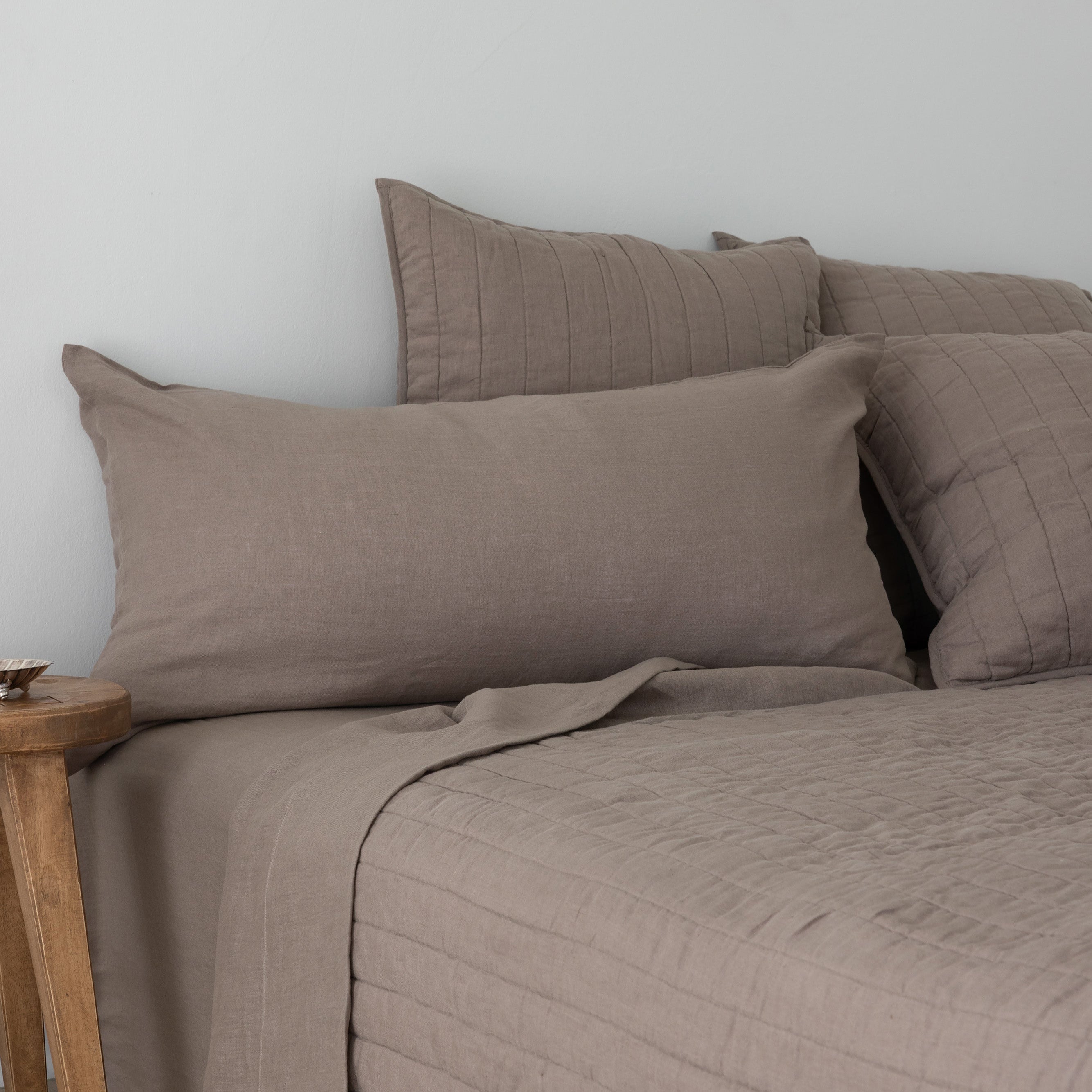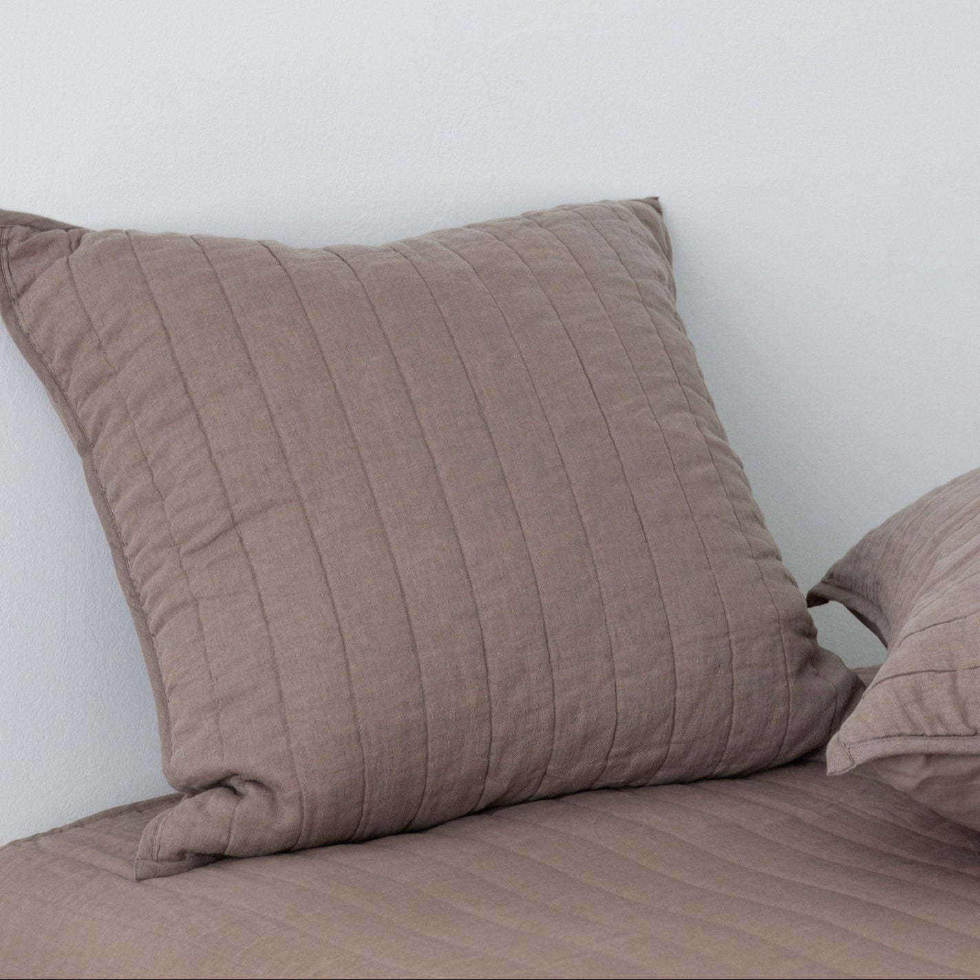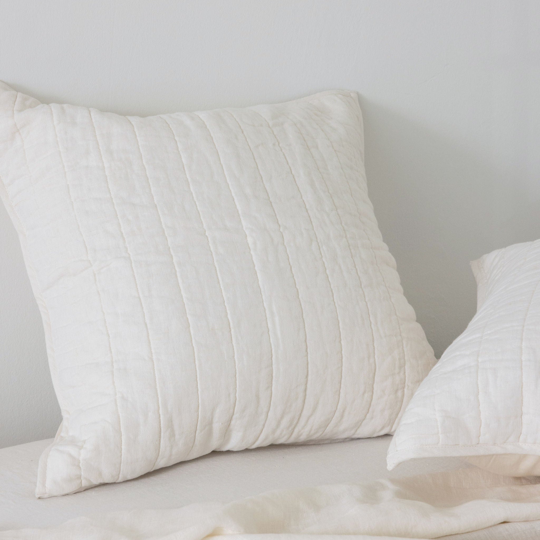 Refined. Elevated. Timeless. Our channel sham is crafted with European linen on one side and Organic Lustre cotton on the other and lightly filled as a perfect match to our European linen channel quilt.
