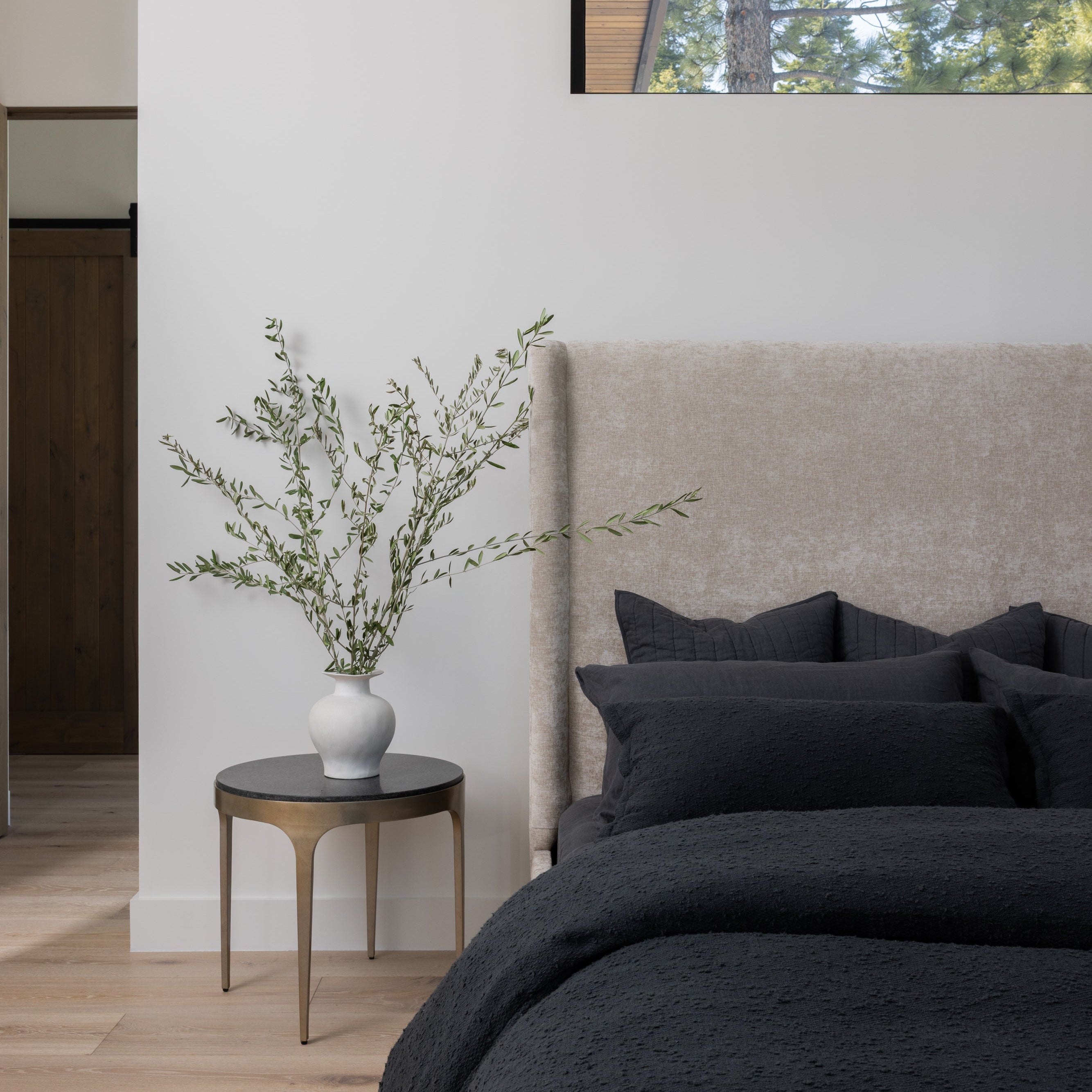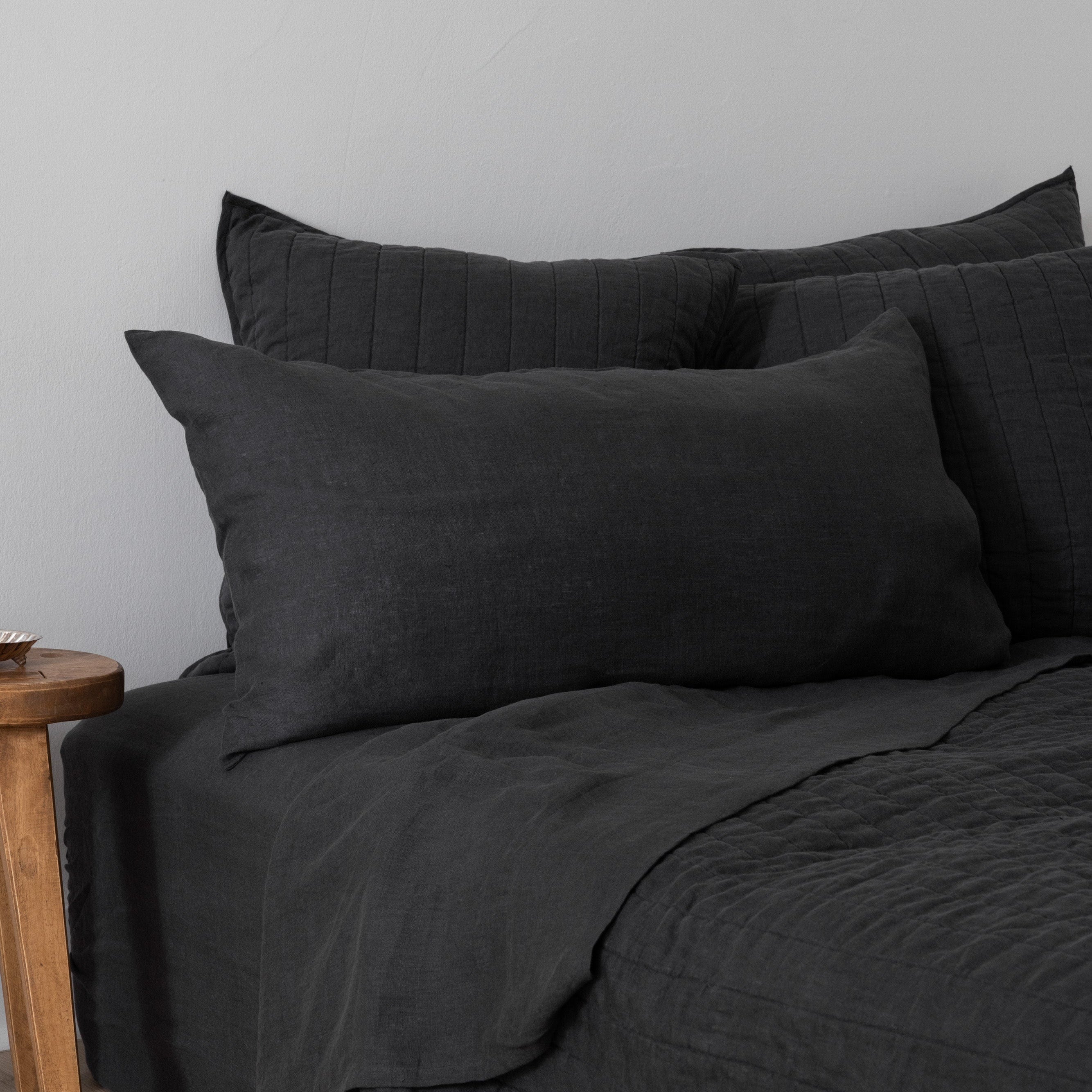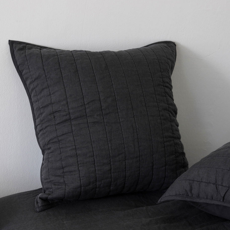 Refined. Elevated. Timeless. Our channel sham is crafted with European linen on one side and Organic Lustre cotton on the other and lightly filled as a perfect match to our European linen channel quilt.