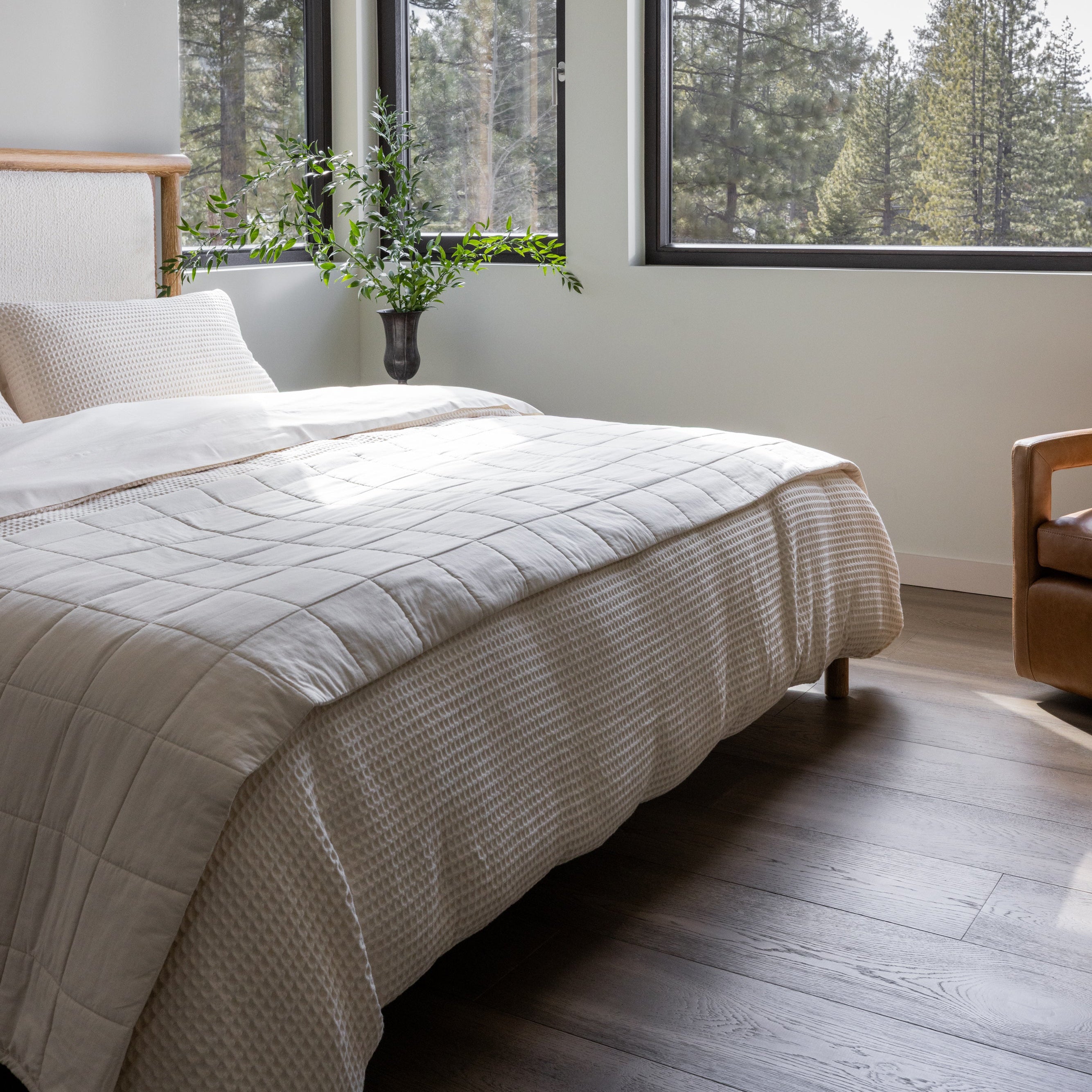 Quintessential. Silky-Soft. Radiant. Our box quilt might just be the softest quilt you've ever felt. Lightly filled for year-round use; you can't go wrong. Made of 100% GOTS-Certified Organic Cotton.