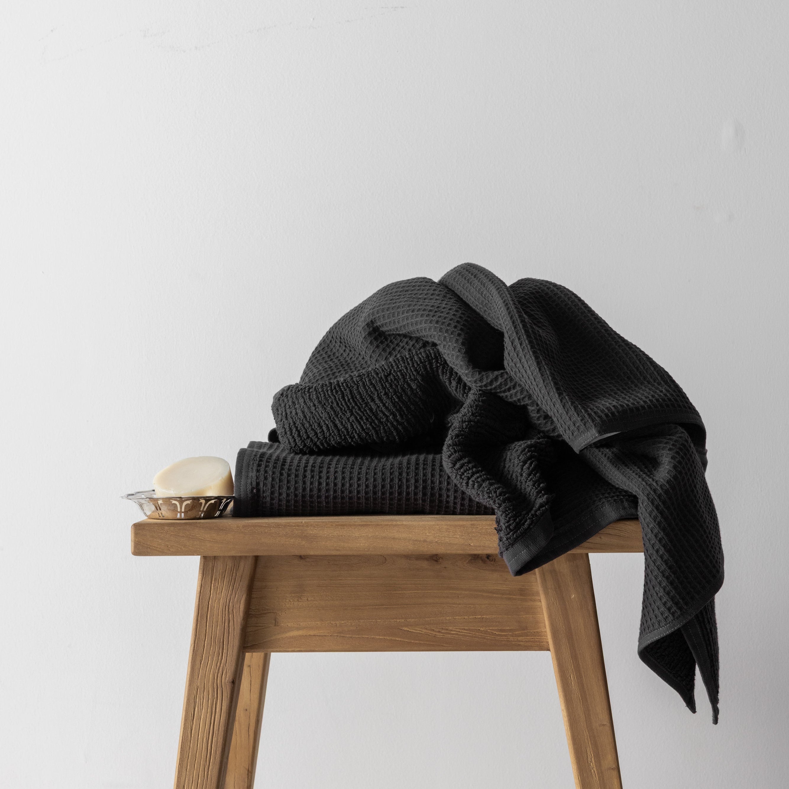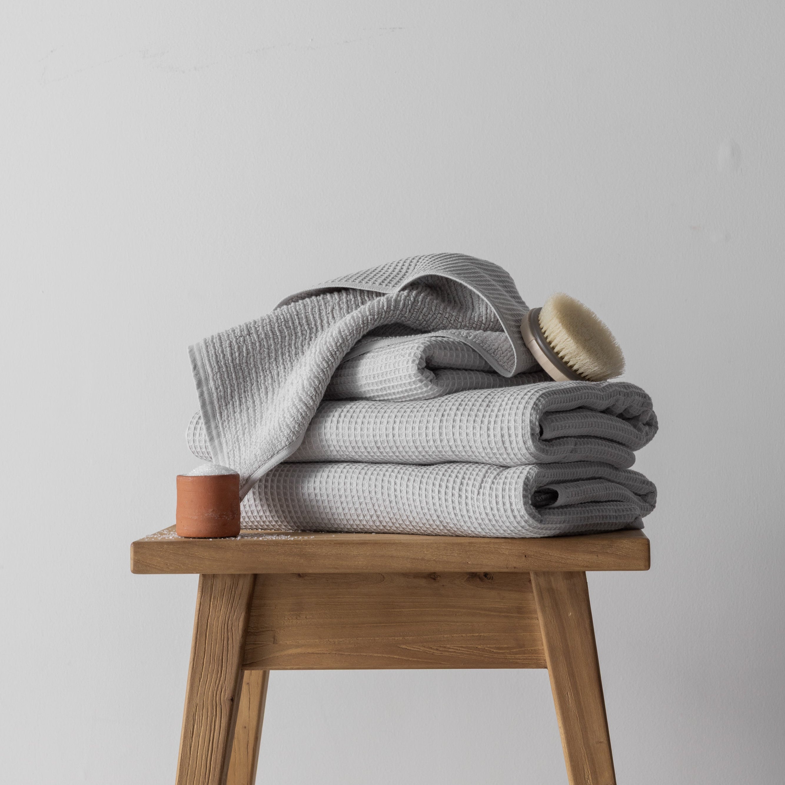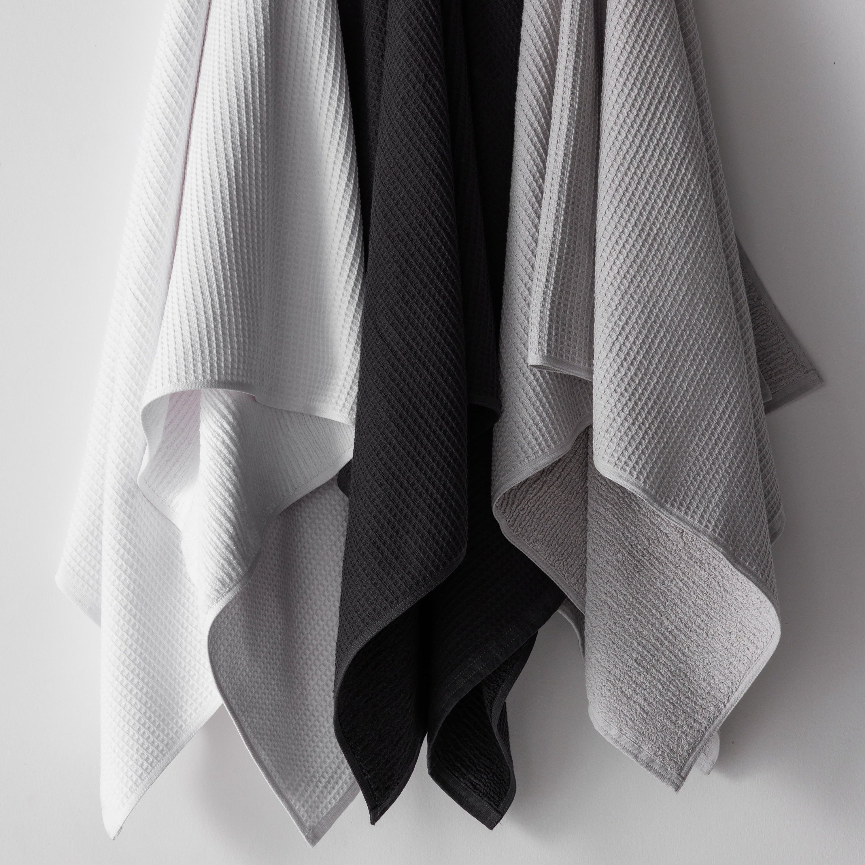 Balanced. Intentional. Lightweight. Get the best of both worlds: airy waffle weave on one side, classic terry loops on the other to ensure breathability, quick absorption and modern texture.